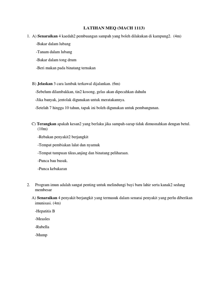 Contoh Soalan Penyakit Berjangkit Soalan Objektif